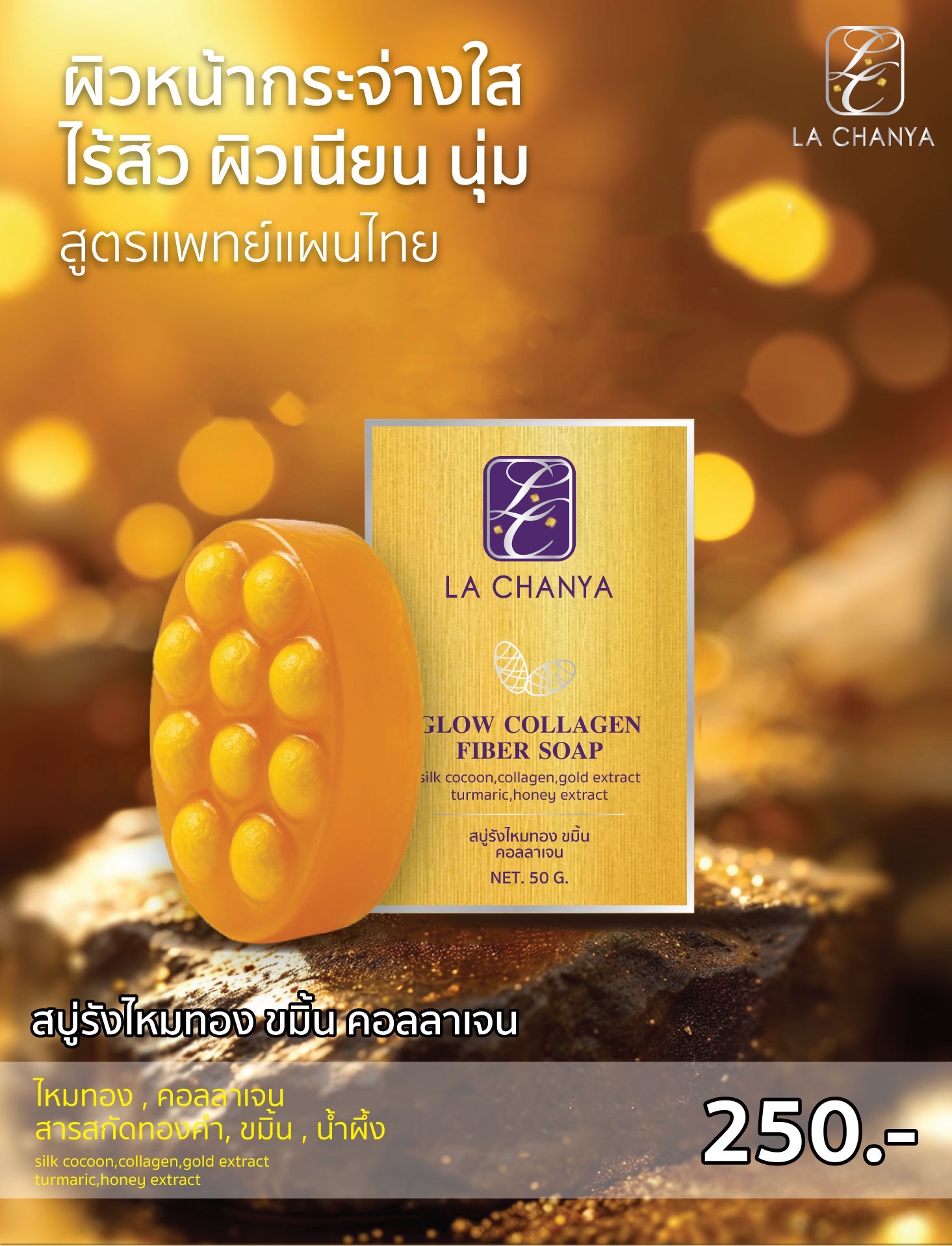 LA CHANYA สบู่รังไหมขมิ้น คอลลาเจน Glow Collagen Fiber Soap